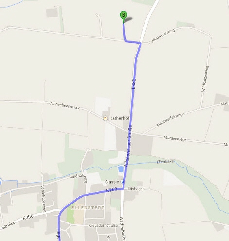 In der Ortsdurchfahrt von Goldenstedt links Richtung Ellenstedt (L 882) abbiegen. Nach durchfahren der Ortschaft Ellenstedt liegt der Windpark auf der linken Seite.